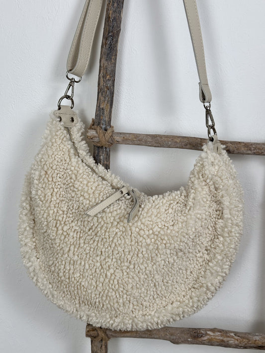 AusverkauftTEDDYFELL TASCHE HALBMOND BEIGE