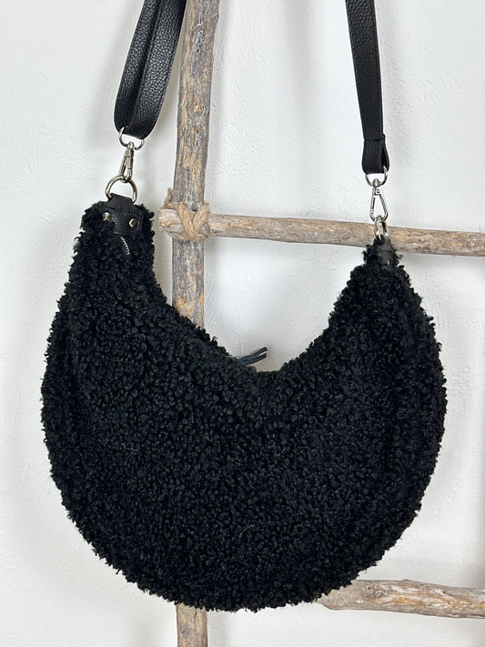 AusverkauftTEDDYFELL TASCHE HALBMOND SCHWARZ