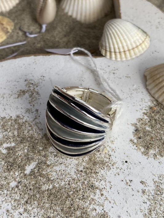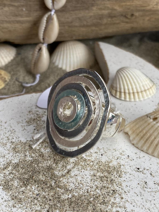Cocktail - Stretch - Ring Silber Blautöne