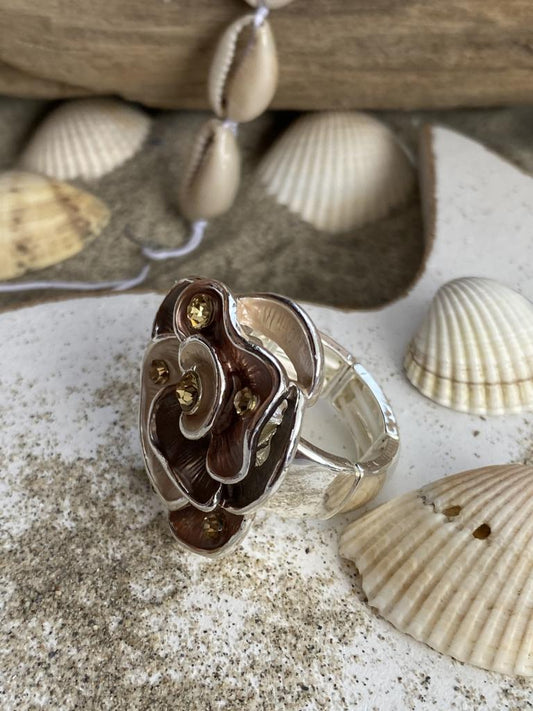 AusverkauftCocktail - Stretch - Ring Silber Brauntöne