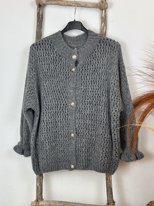 ALPAKA CARDIGAN MIT RÜSCHENÄRMEL