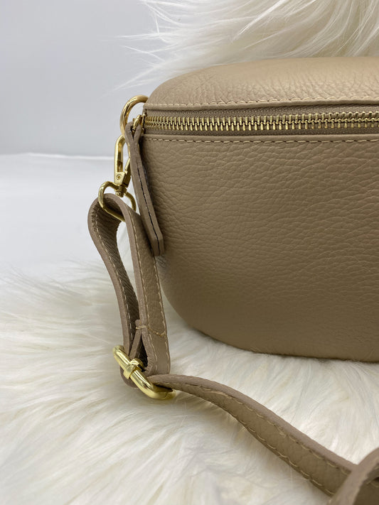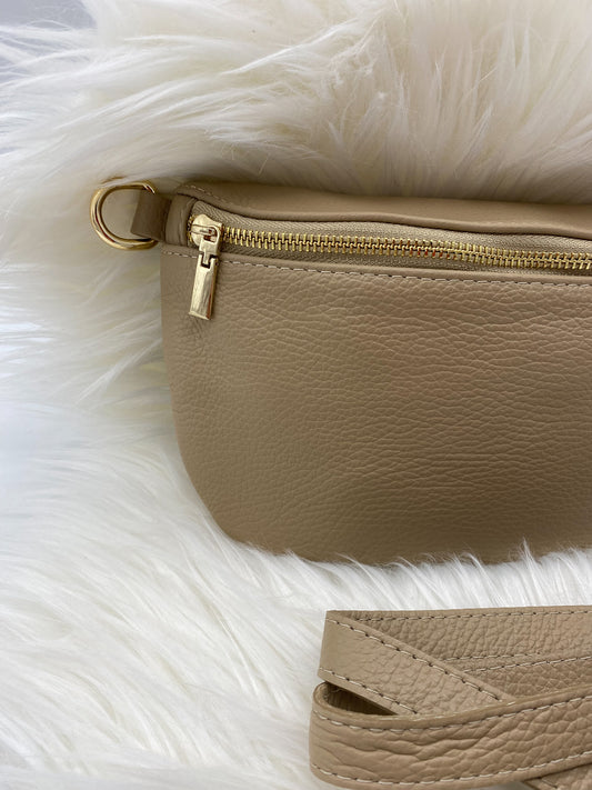 BORSE IN PELLE MEDIUM LEDER BAUCHTASCHE TAUPE HELL