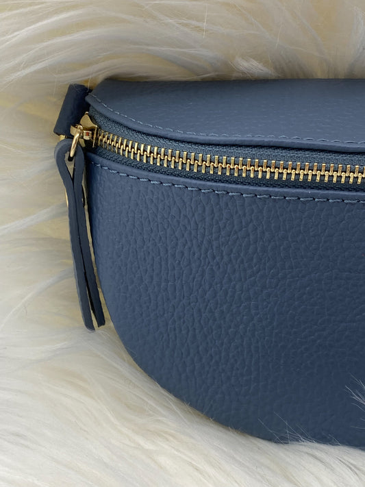 BORSE IN PELLE STANDARD LEDER BAUCHTASCHE JEANSBLAU