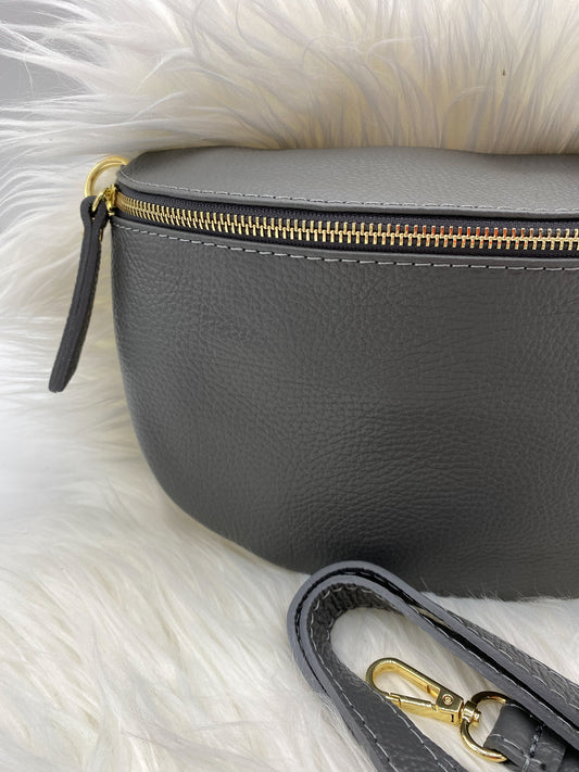 BORSE IN PELLE LARGE LEDER BAUCHTASCHE GRAU