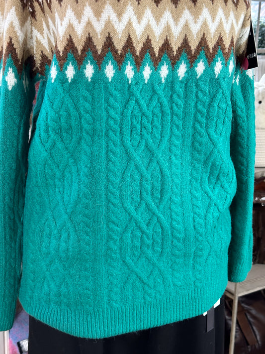 PULLOVER MIT NORWEGER & ZOPFMUSTER TÜRKIS