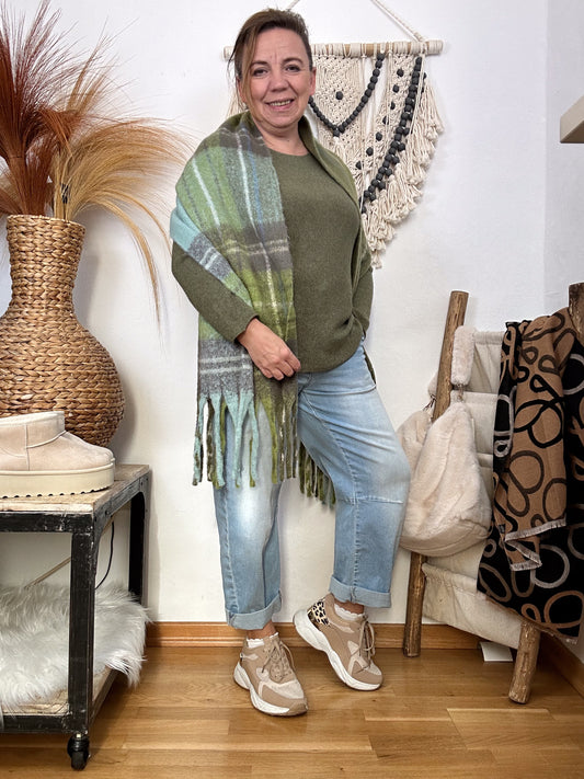 AusverkauftXXL KUSCHELSCHAL KARIERT OLIVGRÜN