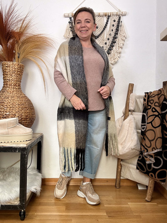 KUSCHELSCHAL KARIERT GRAU BEIGE