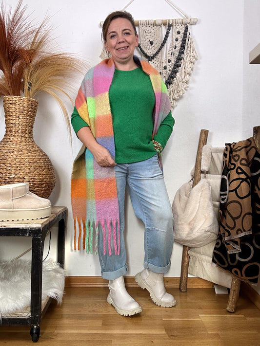 KUSCHELSCHAL KARIERT GRÜN ORANGE