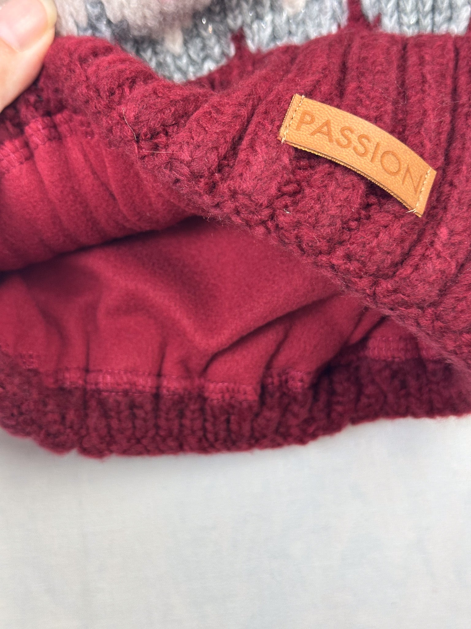 Mütze mit Bommel mit Fleece gefüttert
